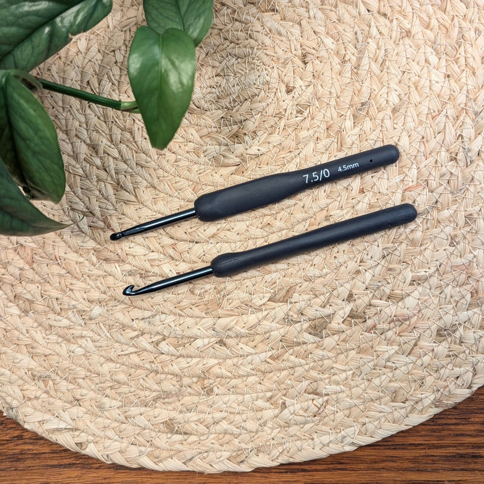 Både den svarta och den orangea virknålen är ergonomisk men lägg märke till att skaften har lite olika form. Vilken form man tycker bäst om är en smaksak och här på LaLo Virkar är båda två stora favoriter!