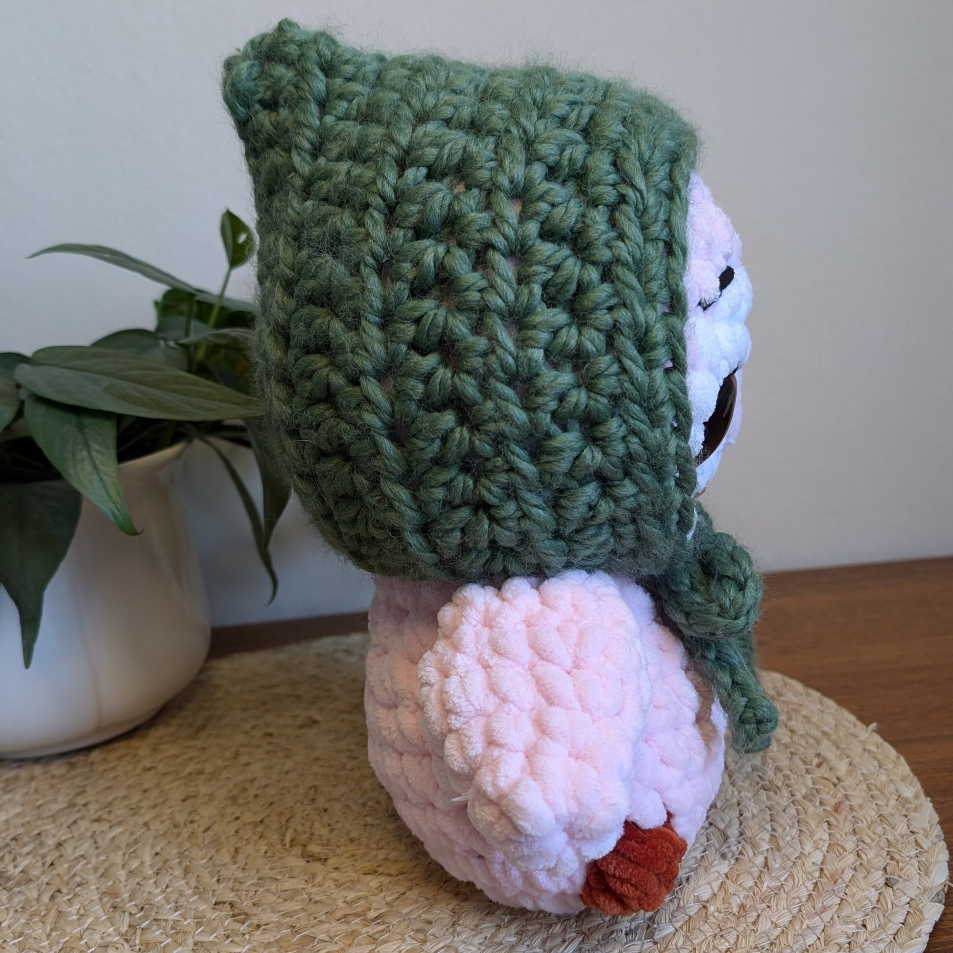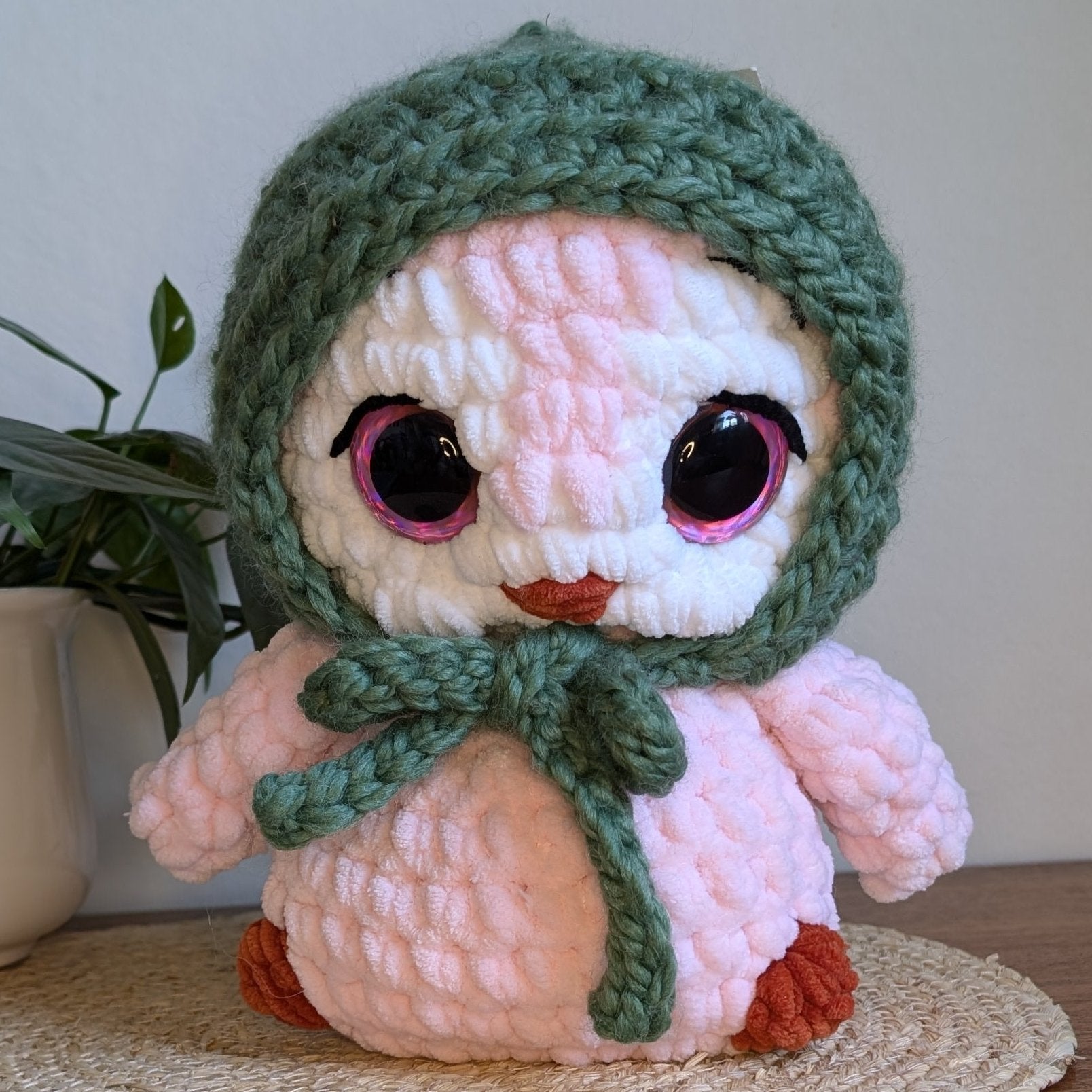 Den virkade pingvinen ingår INTE i köpet av hättor. Den är med för att visa hur hättorna är formade.