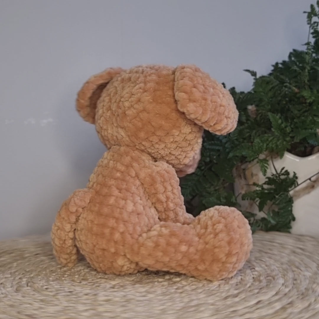 Hunden Harry virkas på beställning och har därför en leveranstid på en till två veckor. Eftersom att Hunden Harry är handgjord kan storlek och färg skilja sig något jämfört med bilden.